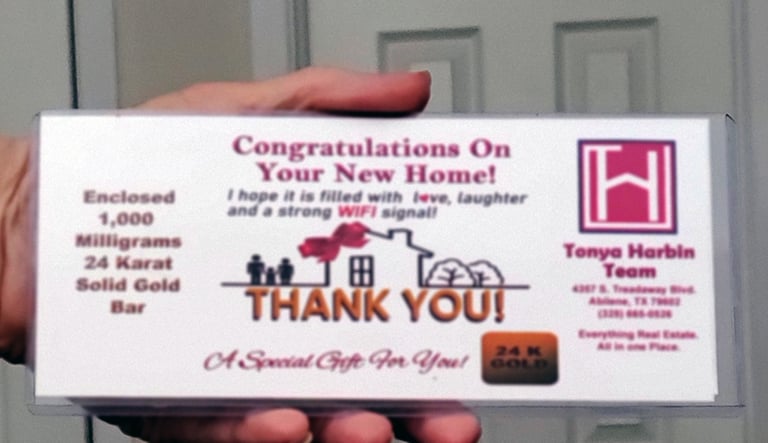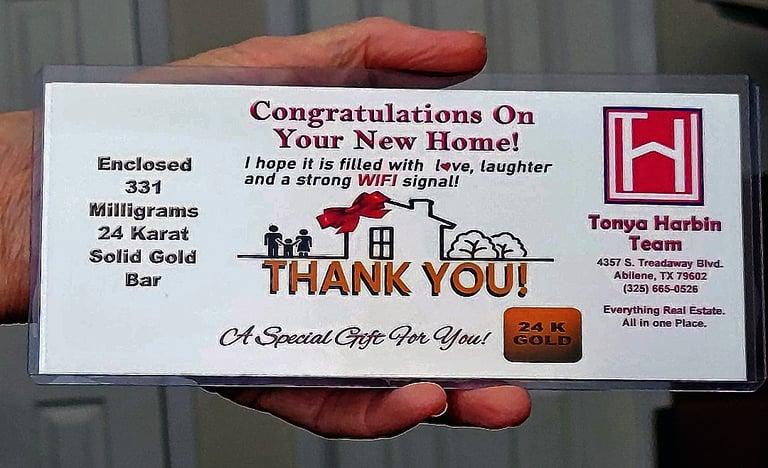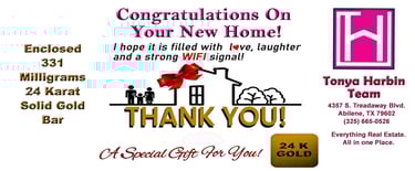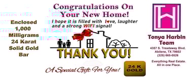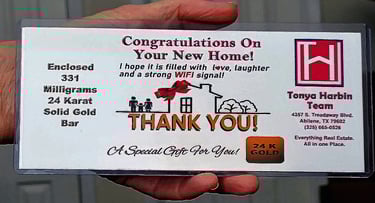 Realtor Buyer Appreciation Gold Gift 1,000 Mg 24 Karat Pure Solid Gold Bar